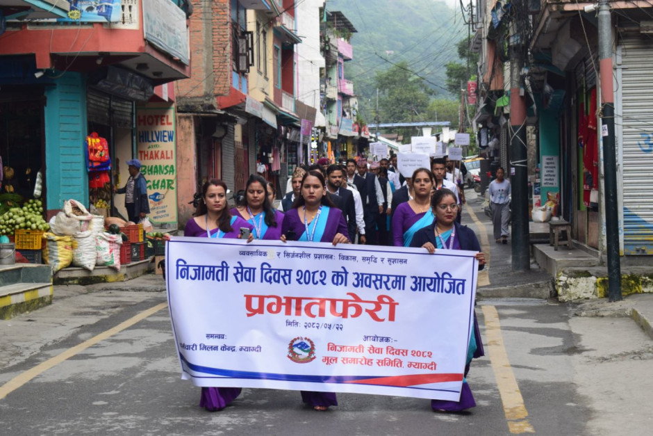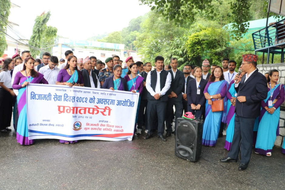 “व्यवसायिक र सिर्जनशील प्रशासन: विकास, समृद्धि र सुशासन” भन्ने मूल नाराका साथ निजामती सेवा दिवस २०८२ को अवसरमा २०८२/०५/२२ मा आयोजित प्रभातफेरी कार्यक्रम