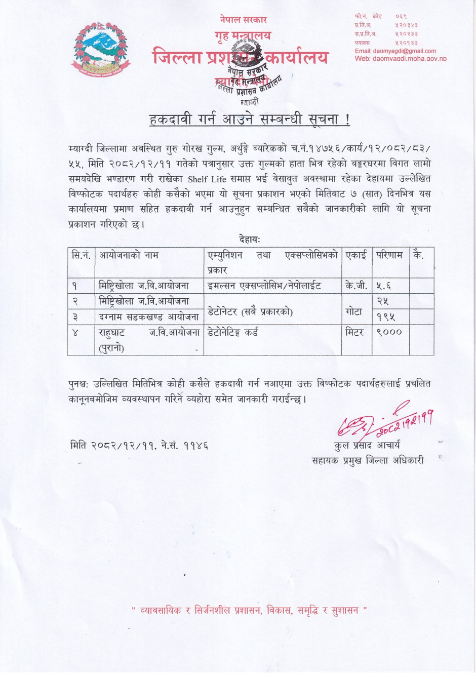 © सर्वाधिकार सुरक्षित जिल्ला प्रशासन कार्यालय, म्याग्दी