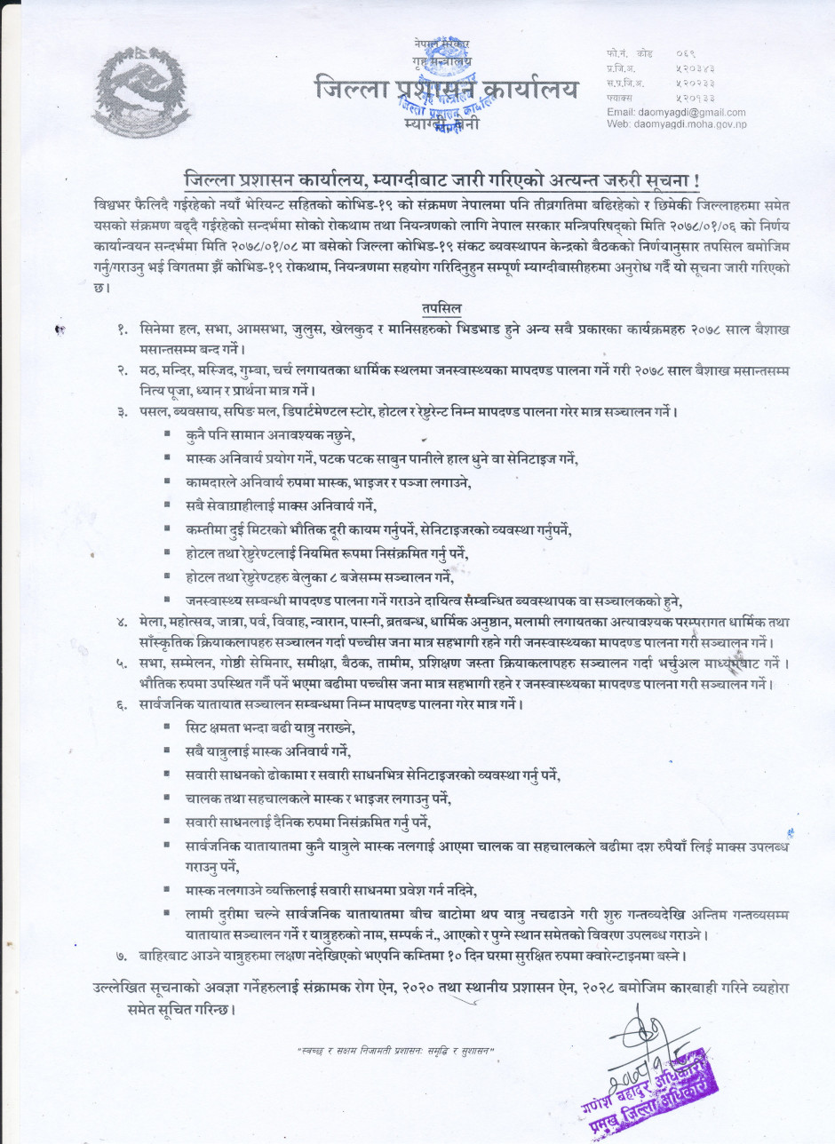 जिल्ला प्रशासन कार्यालय, म्याग्दीबाट जारी भएको अत्यन्त जरूरी सूचना !