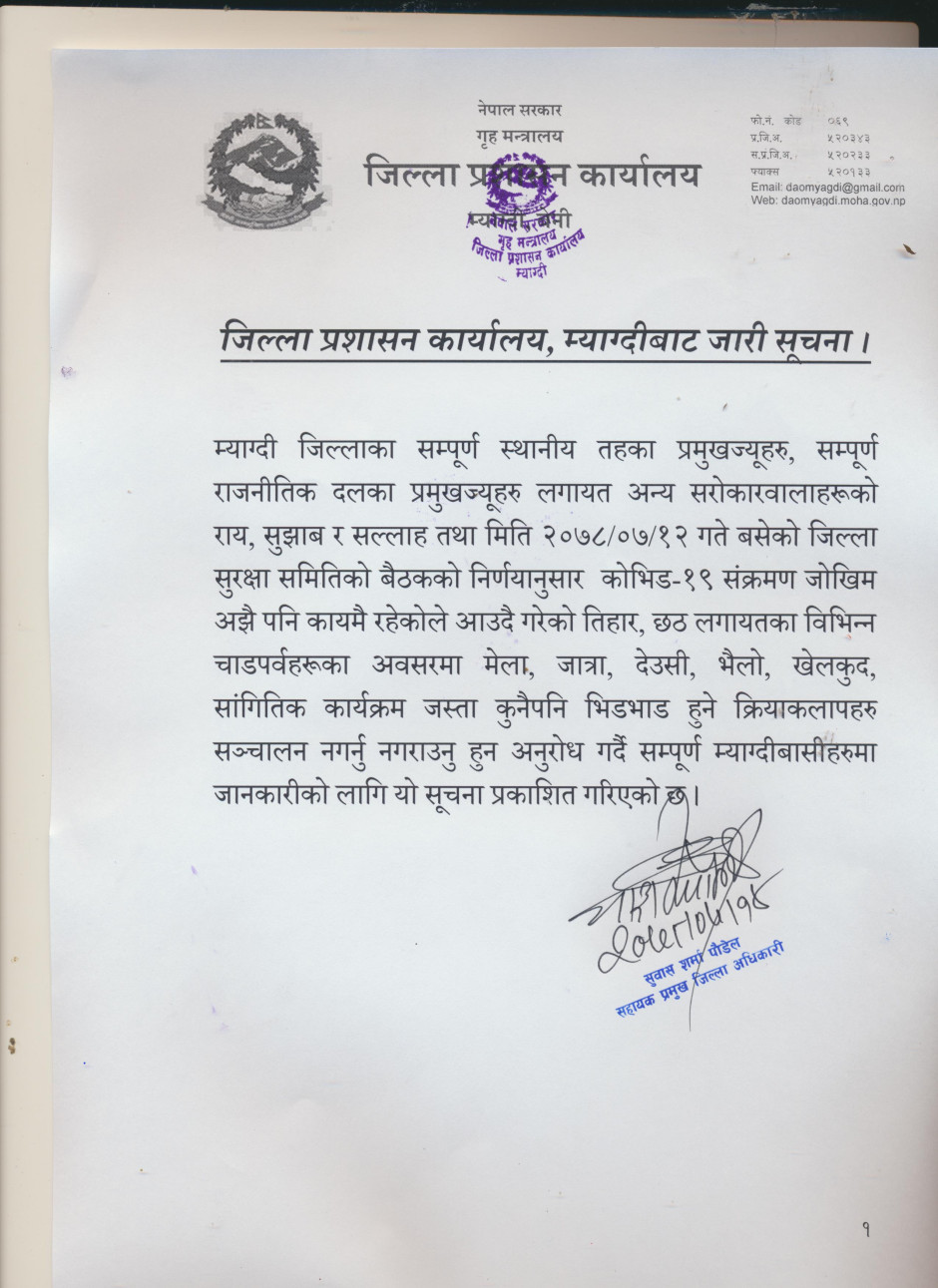 जिल्ला प्रशासन कार्यालय, म्याग्दीबाट जारी सुचना ।