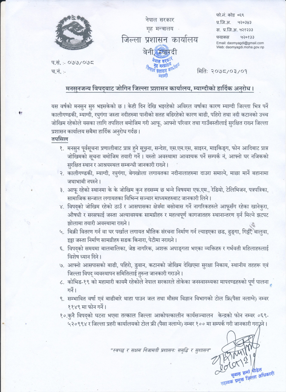 जिल्ला प्रशासन कार्यालय, म्याग्दीको अनुरोध ।