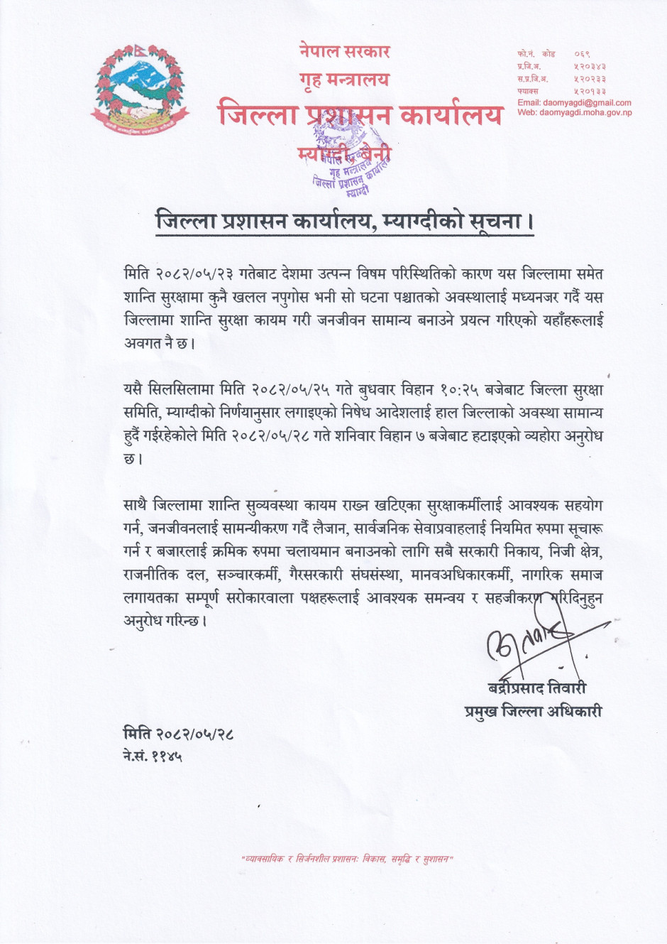 जिल्ला प्रशासन कार्यालय, म्याग्दीको सूचना ।