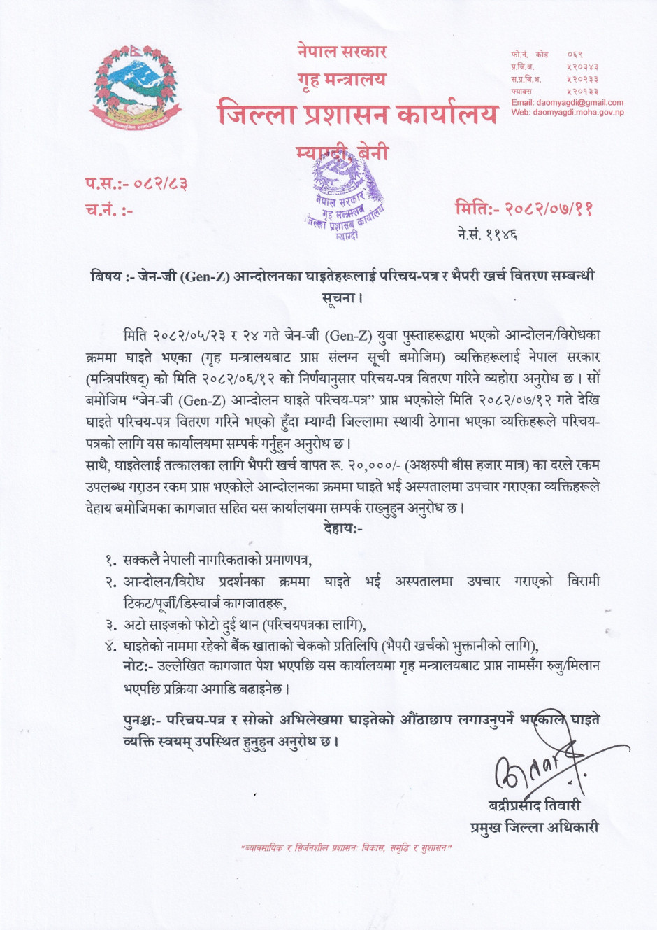 © सर्वाधिकार सुरक्षित जिल्ला प्रशासन कार्यालय, म्याग्दी .