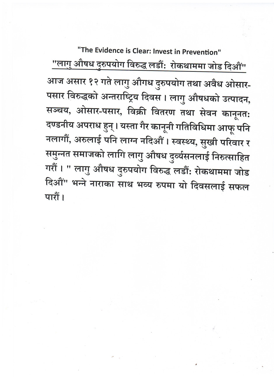 लागु औषध दुरुपयोग विरुद्ध लडौं : रोकथाममा जौड दिऔं
