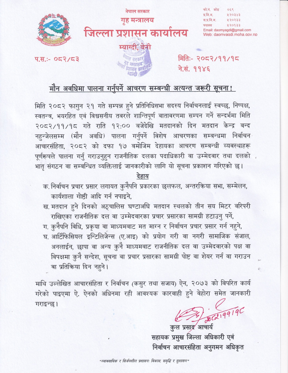 मौन अवधिमा पालना गर्नुपर्ने आचरण सम्बन्धी अत्यन्त जरुरी सूचना।