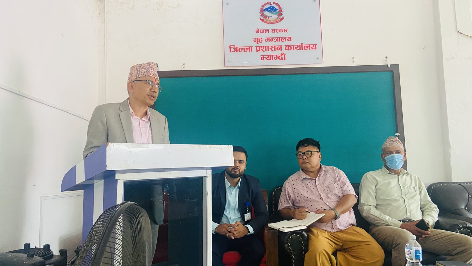 मिति २०८२/०५/१५ जिल्ला प्रशासन कर्यालय, म्याग्दीको सभाहलमा प्रमुख जिल्ला अधिकारीको विशेष उपस्थिति, महत्वपूर्ण निर्देशन र सुझाव सहित सूचना अधिकारीको बैठक सम्पन्न ।